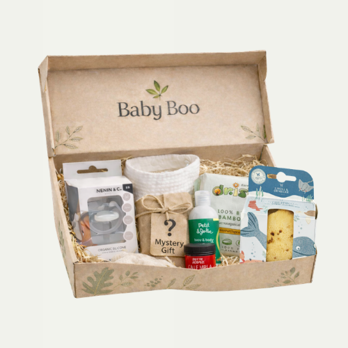Във всяка кутия ще откриете внимателно подбран допълнителен символичен подарък – малък, но специален детайл, който допълва грижата за вашето бебе.